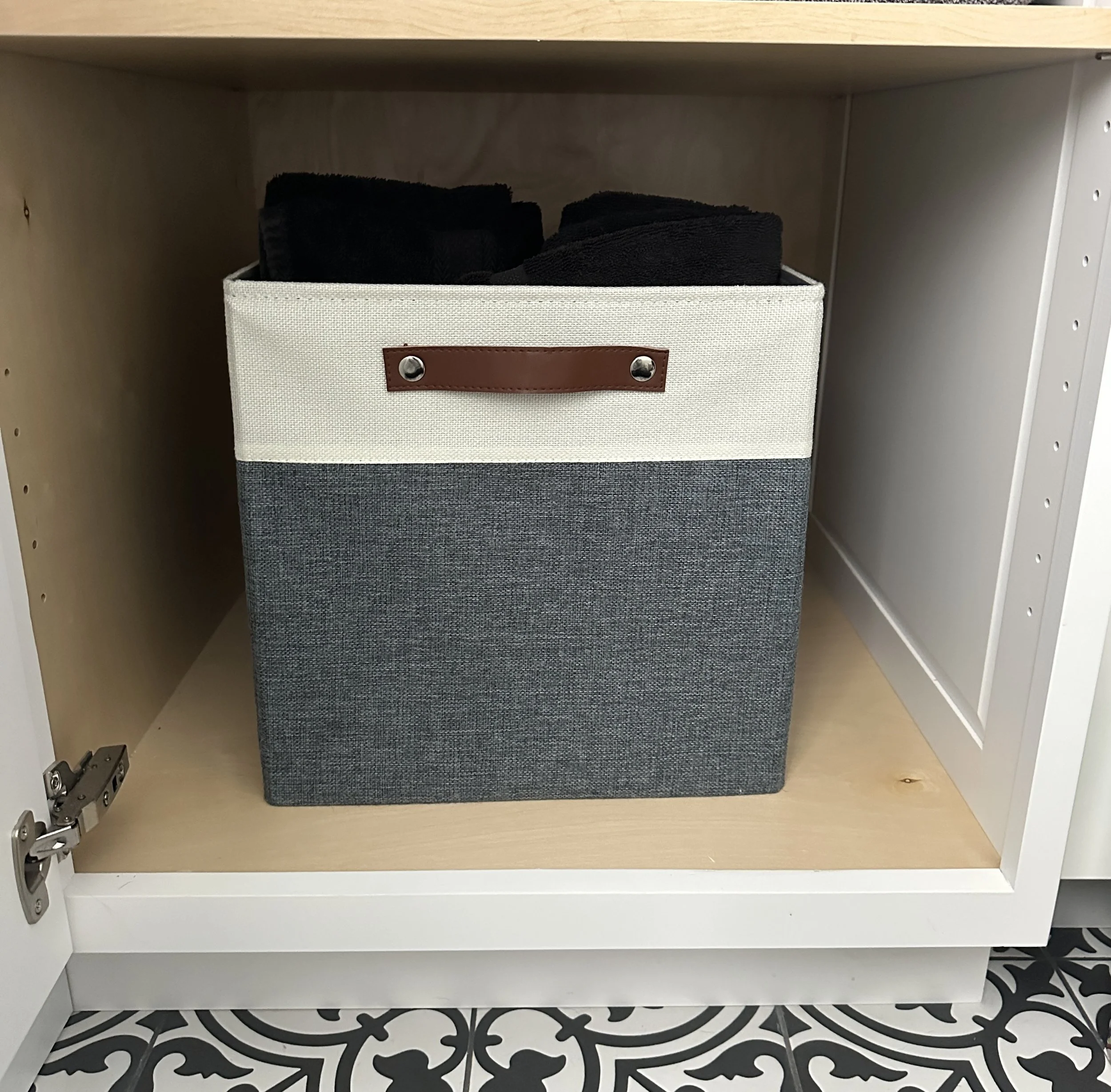 I’m a big fan of bins, if you can’t tell and I use them everywhere for organization but I especially love these for their slightly larger size and stylish appearance. Without structure, open cabinets quickly become catch-alls. These collapsible bins create defined zones, keeping items contained and surfaces clear while making even the smallest cabinet feel intentional. They’re versatile enough to move from bathrooms to closets or linen storage as your needs evolve, which makes them a solution you’ll use for years.